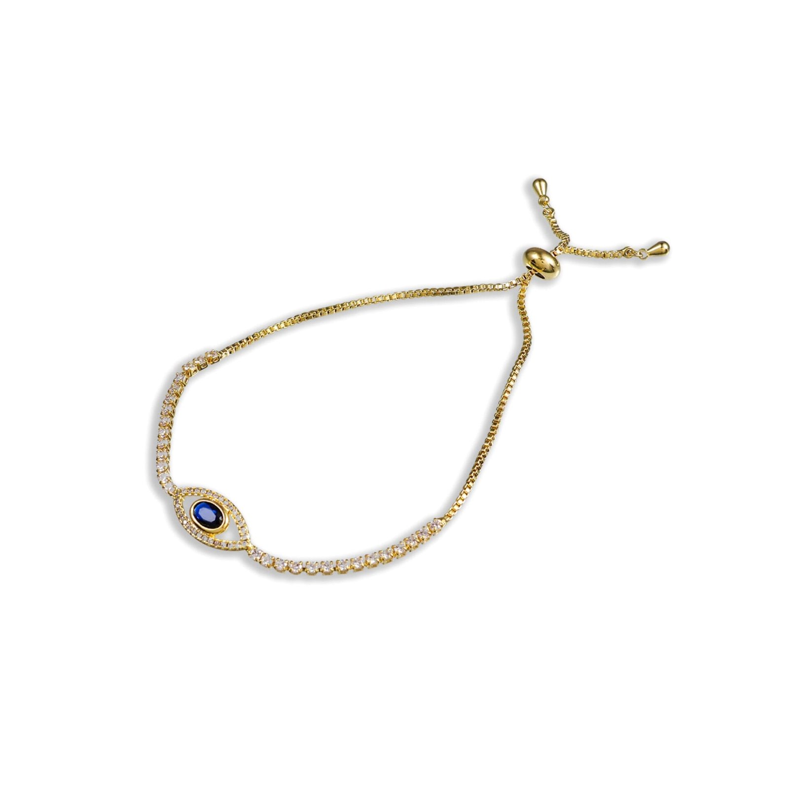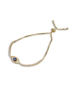 Timeless Protection Meets Modern LuxuryElevate your jewelry edit with the Studded Evil Eye Bracelet. This isn't just an accessory; it's a sophisticated guardian designed to shield you from negativity while adding a radiant glow to your wrist. Crafted for the discerning woman and the stylish young girl, it balances ancient symbolism with contemporary craftsmanship.Exceptional Materials & ArtistryAuthentic Base: Made with premium 925 Sterling Silver, ensuring longevity and value.Elite Finish: Coated in 22KT Real Gold Plating for a rich, warm hue that resists tarnishing.Dazzling Accents: Centered with deep Blue Sapphires and surrounded by a halo of White Cubic Zirconia for a diamond-like brilliance.Why You'll Love ItWhether worn alone as a statement piece or stacked with your favorite gold bangles, this bracelet is engineered for comfort and daily wear. The adjustable clasp ensures a perfect fit for both women and girls, making it a versatile addition to any collection.The Perfect GiftDelivered in