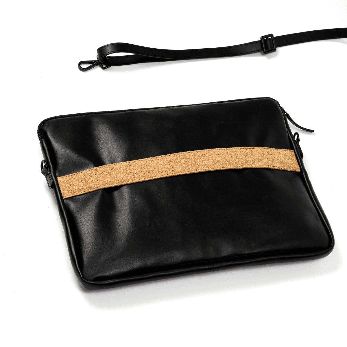 Sustainable laptop sleeve crafted from vegan leather for stylish tech protection.
