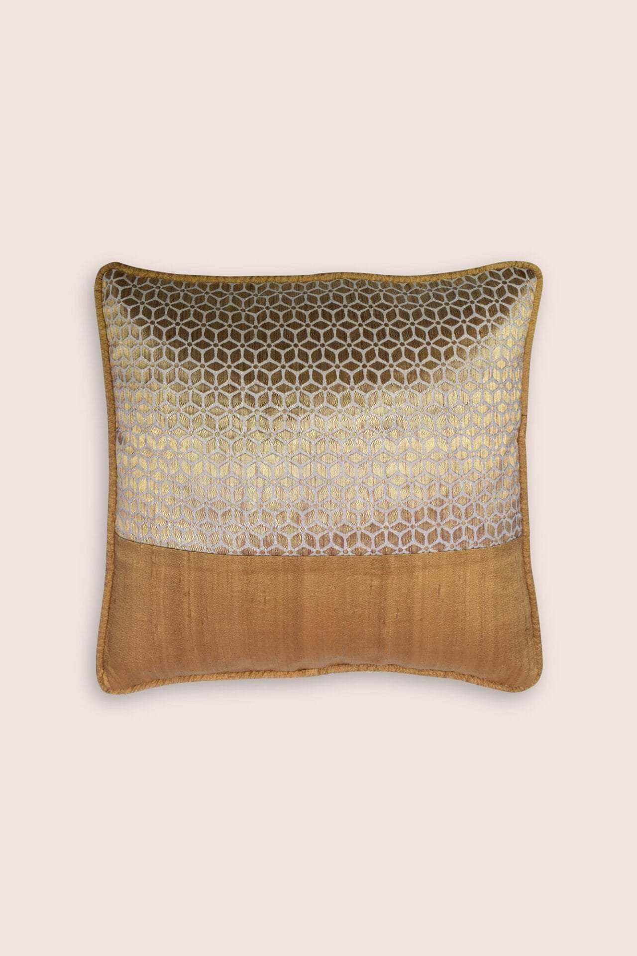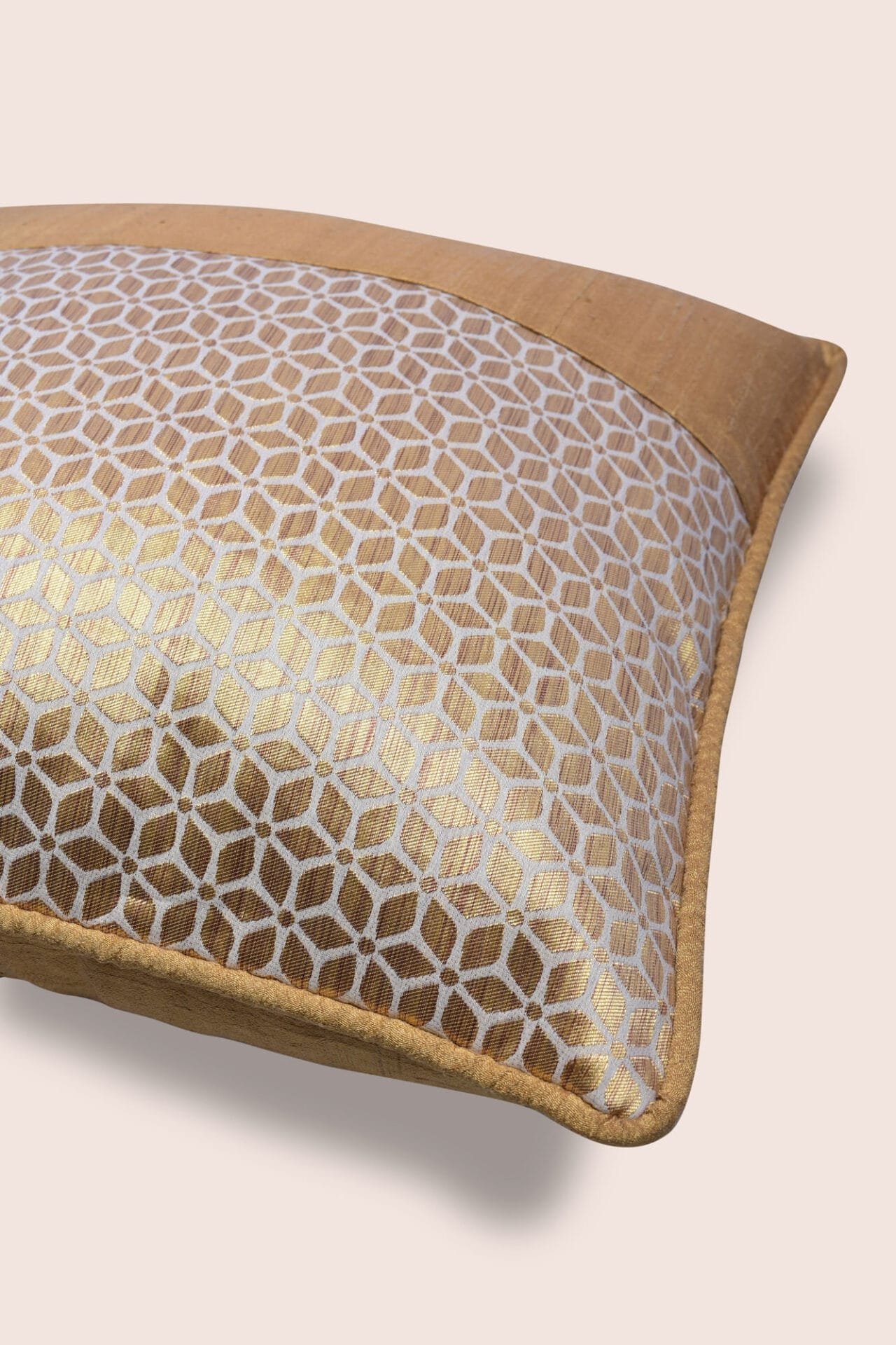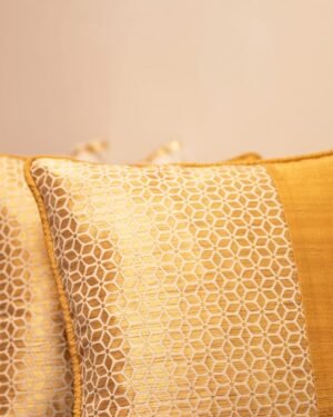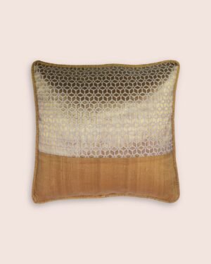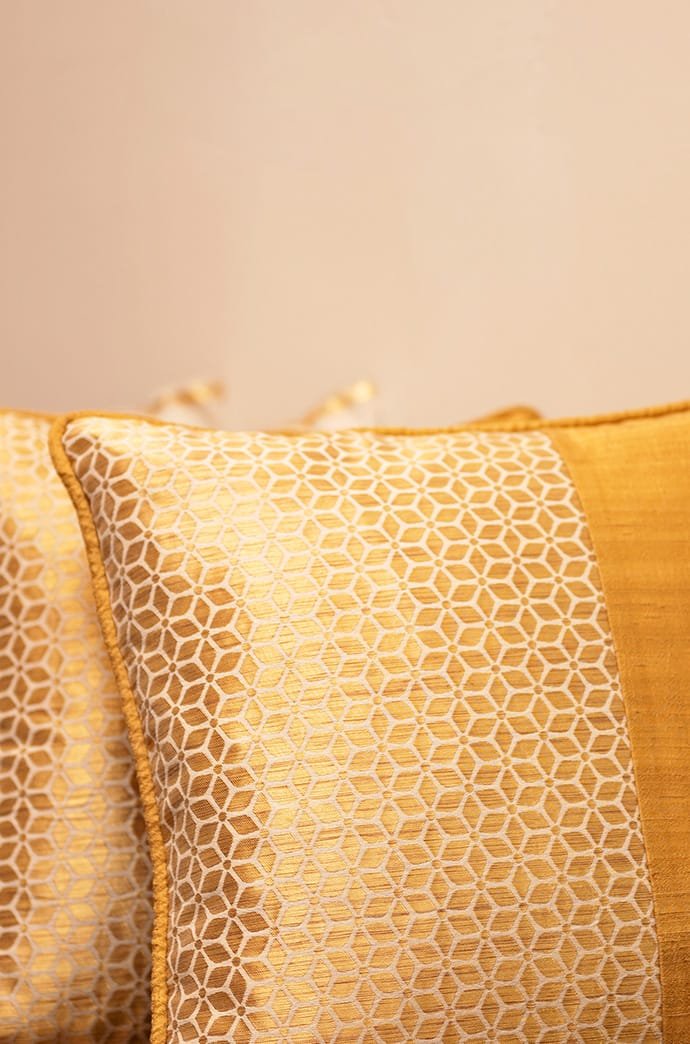 Delight your home with the festive sparkle of our Aram handwoven cushions. The geometrical floral pattern realised with a jacquard patch on handwoven dupion silk facilitates a calm grandeur that is inviting and invigorating.Care: Dry Clean Only.