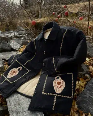 A hand embroidered quilted long jacket
