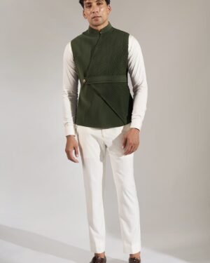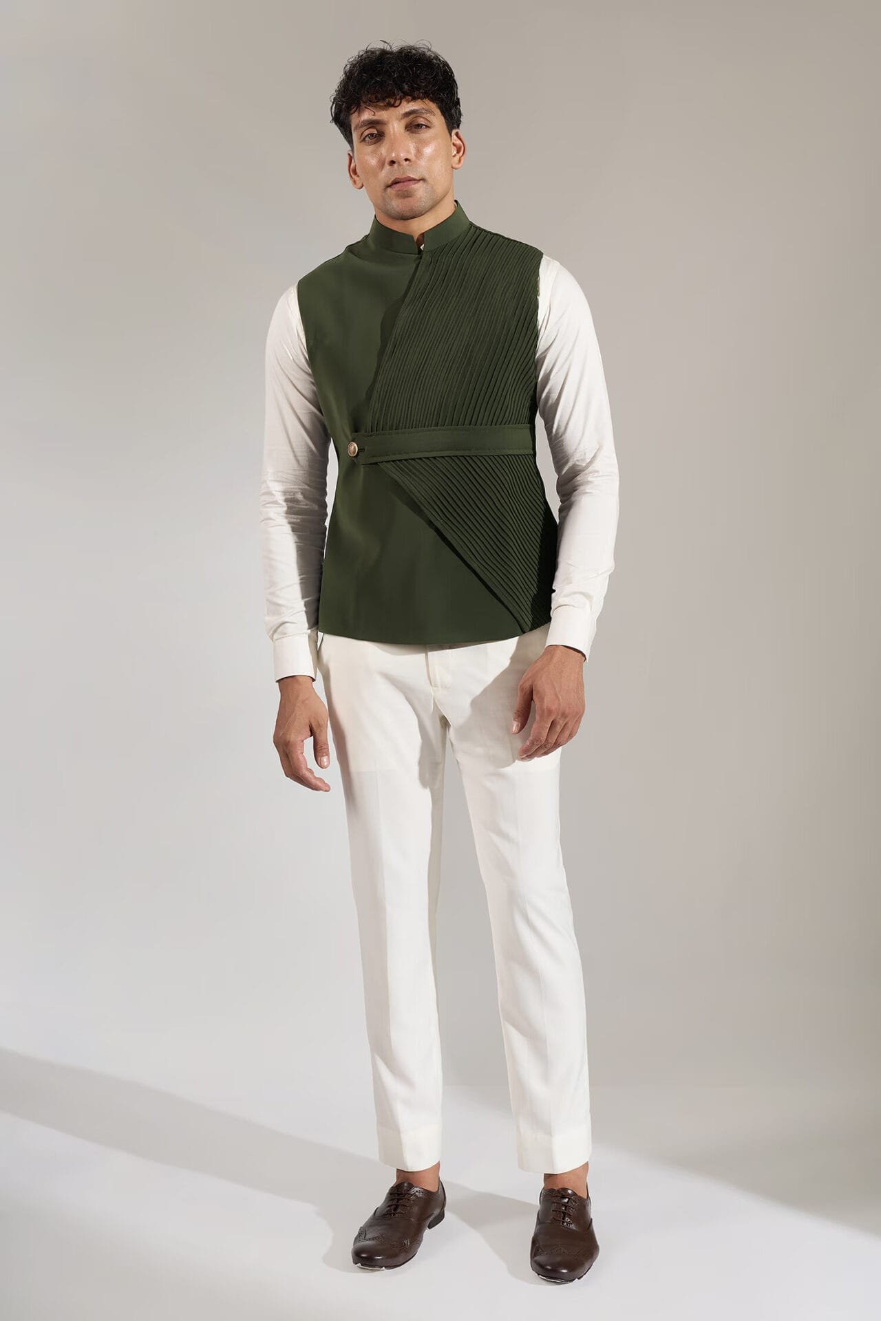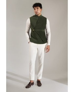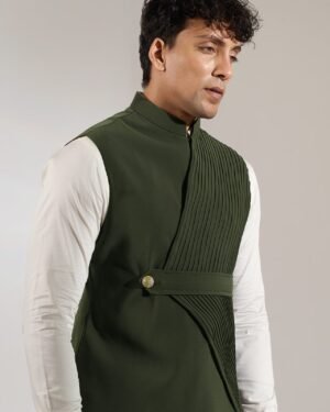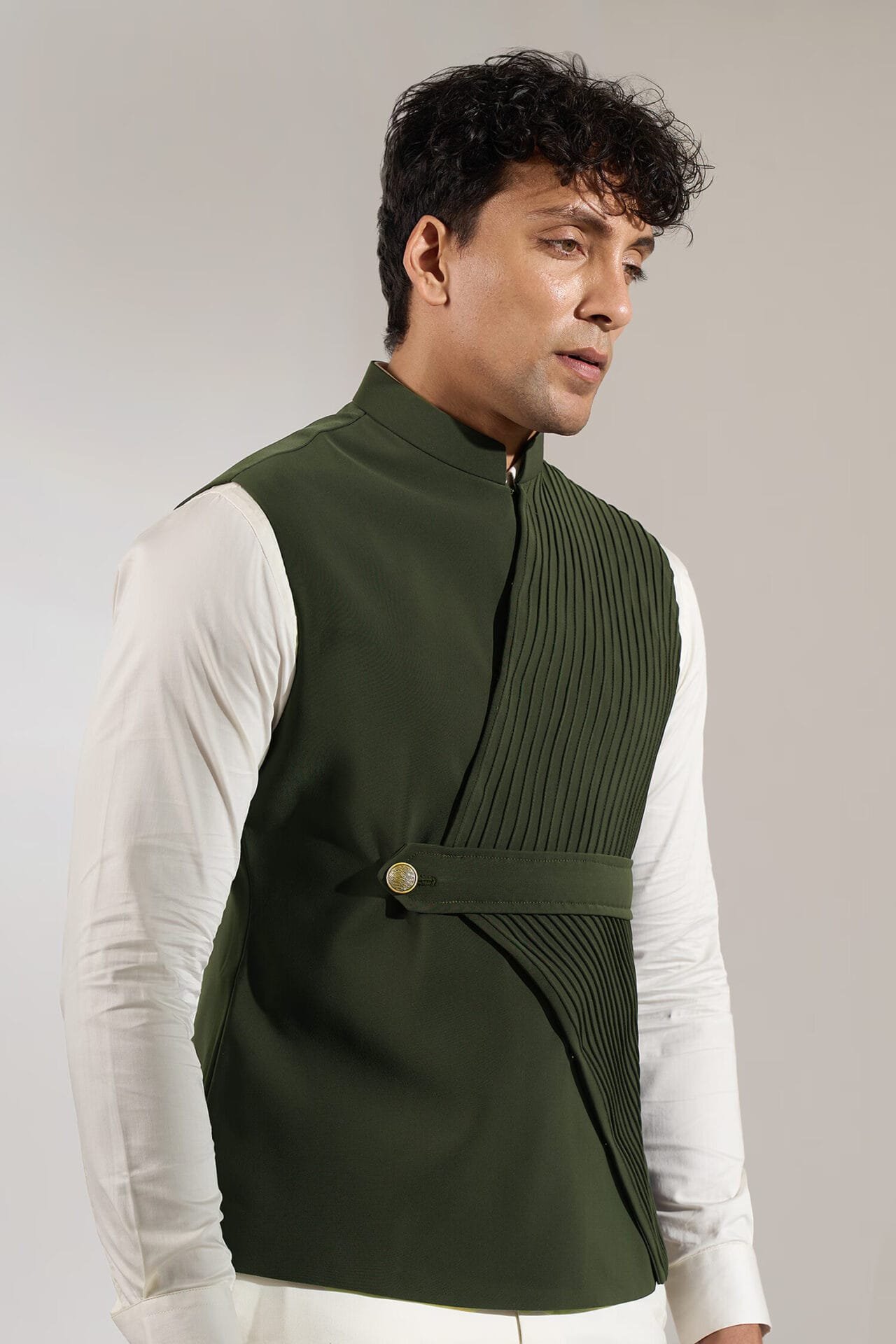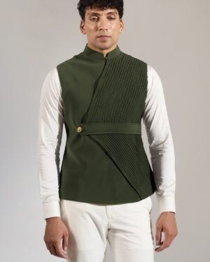 Black french terry based jacket enhanced with pintucks and metal buttons detailing.