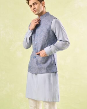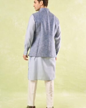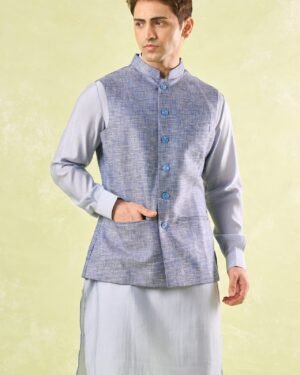 Blue tweed texture based jacket, enhanced with two hand pockets and one pocket square pocket.