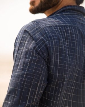 Elevate your wardrobe with our handwoven cotton ikat weave shirt in captivating Prussian blue. Crafted with care, this collared half sleeve shirt exudes casual elegance, perfect for both day and night occasions. The intricate ikat pattern adds a touch of artisanal charm, while the breathable cotton fabric ensures comfort throughout the day. Pair it with your favourite jeans for a laid-back yet sophisticated look, and make a statement wherever you go. Experience the fusion of tradition and style with our effortlessly chic shirt. Length: Waist Care: Hand Wash   Please Note: Once the order is placed, we would need approximately 10 days to deliver your item. As a brand that believes in slow, sustainable fashion, we take our time to hand-pick the best materials and hand-craft with care. We allow our artisans time to create and perfect the design from scratch. After which, a round of quality checks are done to deliver