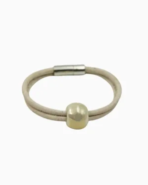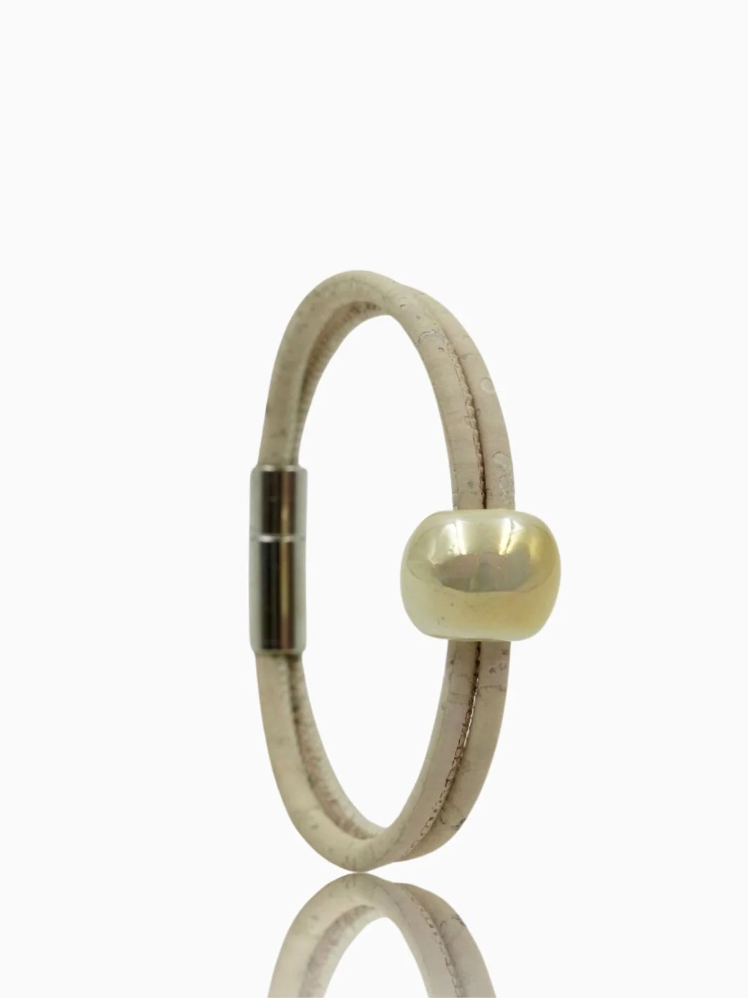 Introducing the Ceramic Pearl Radiance Bracelet, a blend of style and sustainability. This women's vegan white cork bracelet features lustrous ceramic pearl symbolizing purity, wisdom, and serenity. Elevate your fashion with eco-friendly elegance.