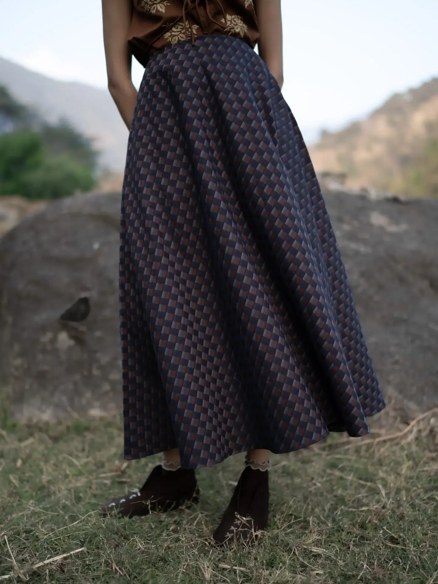 A full circle chessboard pattern skirt