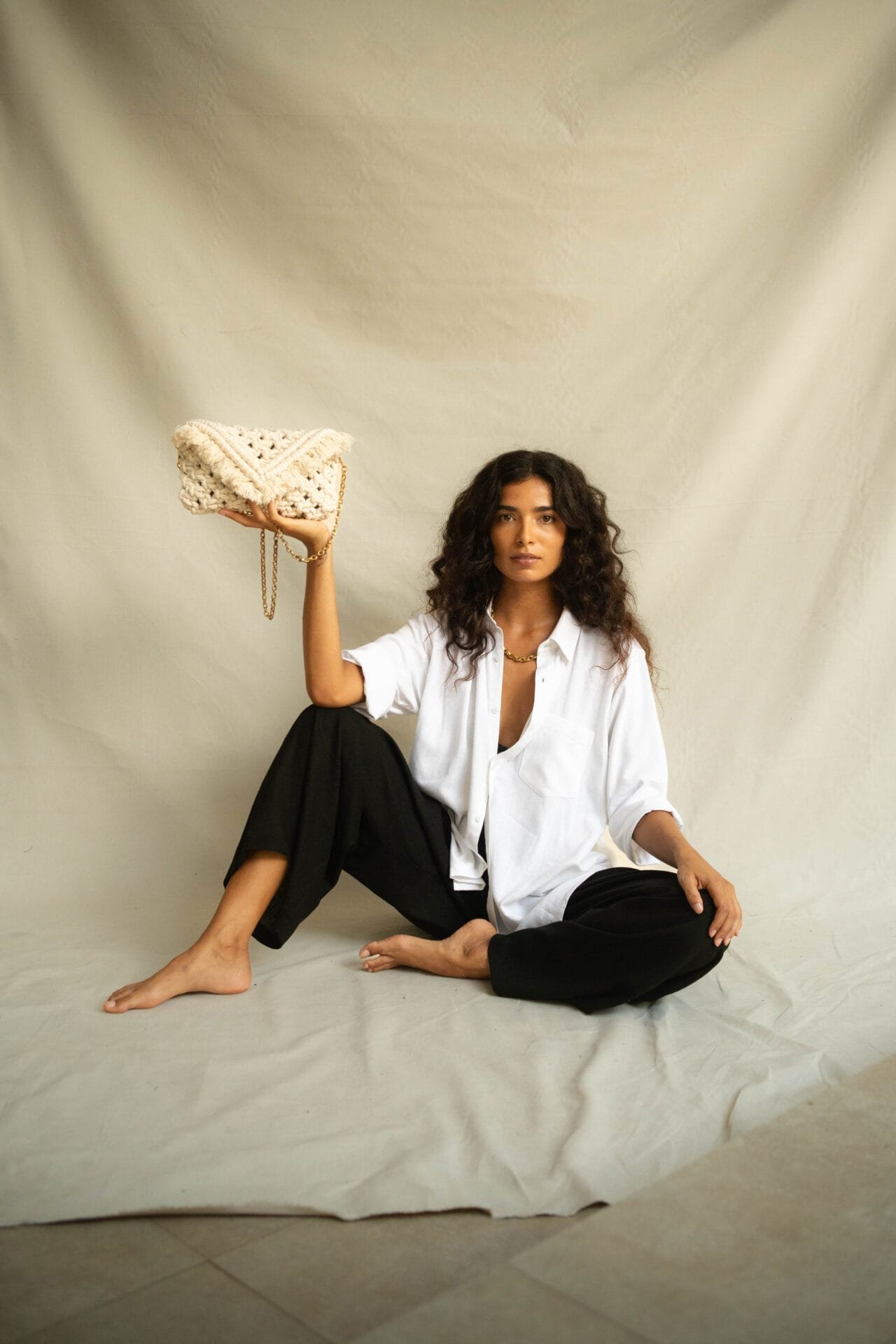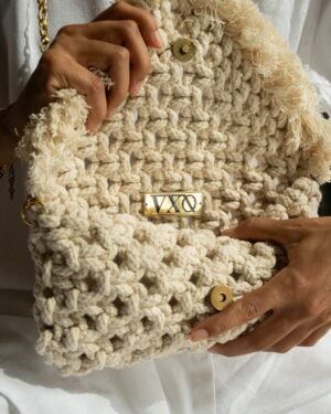 The Hobo Handbag is hand-knotted, cotton macrame lovingly crafted by our team of all-female makers at our home studio in Sri Lanka. The attention to detail in each piece and each knot makes this one-of-a-kind handbag a true labour of love and craft.All bags come with a cotton inner pouch with zip fastening to keep your precious things secure.ColourNatural White  Size25 x 15cmMaterials 100% hand-knotted cotton with fringe trimHandmade brass chain: 115cm lengthBrass Hobo Beautiful emblemBrass magnetic clasp closureCare GuideWipe with a damp cloth and allow it to dry naturally. Brush out the fringing and give a slight trim to the ends to make it like new. The brass chain will dull naturally over time. To revive brass, firstly carefully remove the chain from the handbag, then wipe clean and polish with a dry cloth.