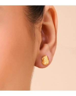Artisan Charm: Cobblestone Textured Studs in 22KT Gold & 925 SilverDiscover the perfect blend of rustic elegance and modern luxury with our Cobblestone Stud Earrings. These earrings move away from standard flat designs, featuring a beautifully irregular, hammered "cobblestone" texture that captures and diffuses light for a soft, natural radiance.Premium Quality MaterialsGenuine 925 Sterling Silver: The base is made of high-quality precious silver, ensuring your jewelry is durable and retains its value.Luxurious 22KT Gold Finish: Each pair is plated with a thick layer of real 22KT gold, providing a deep, rich luster that exudes high-end appeal.Hypoallergenic Protection: Free from nickel and lead, these 925 silver studs are ideal for sensitive ears, offering comfort for all-day wear.Timeless AestheticThe organic, pebble-like silhouette makes these Cobblestone Studs incredibly versatile. They add a touch of artisan flair to a professional blazer or provide a subtle golden glow to a casual weekend outfit. Their understated