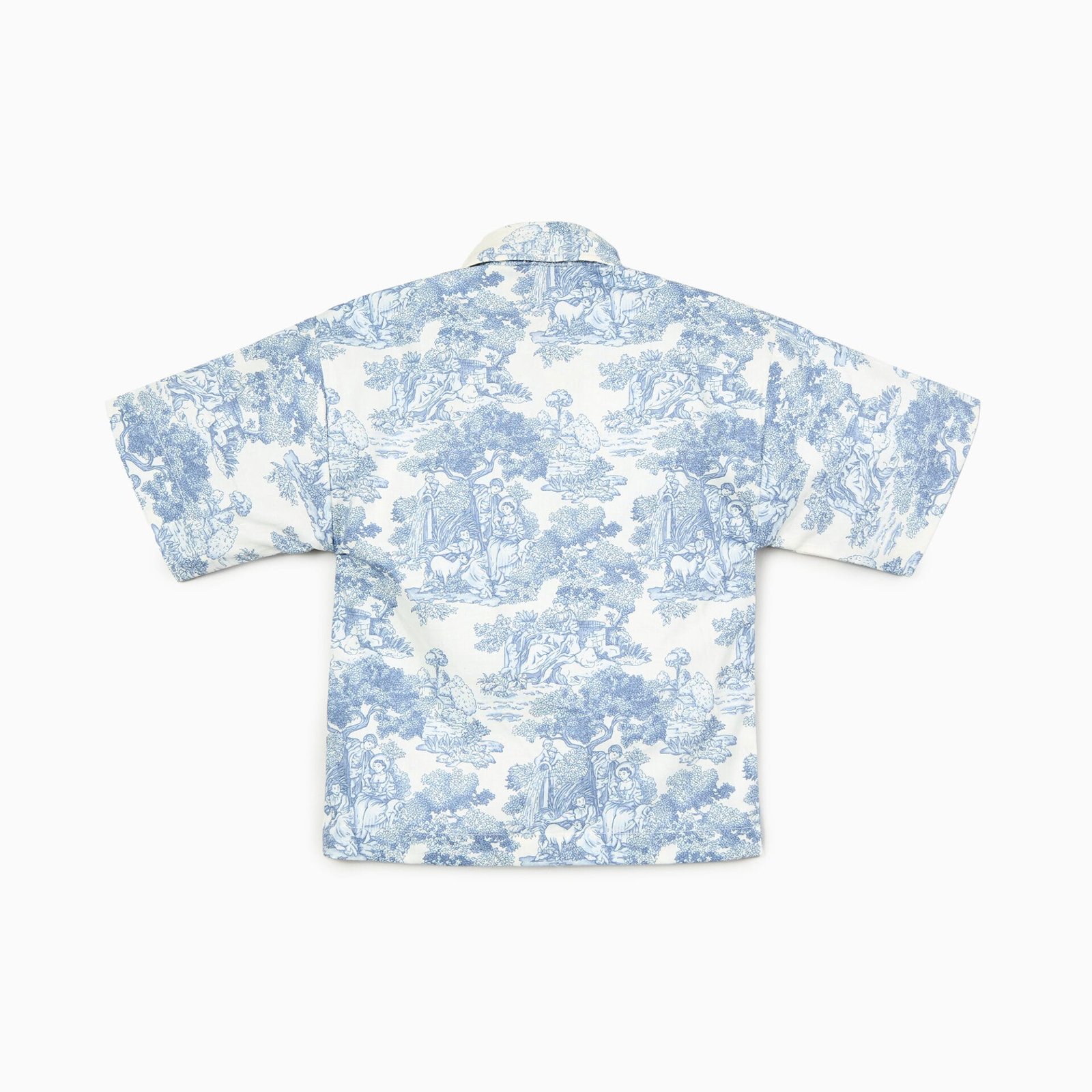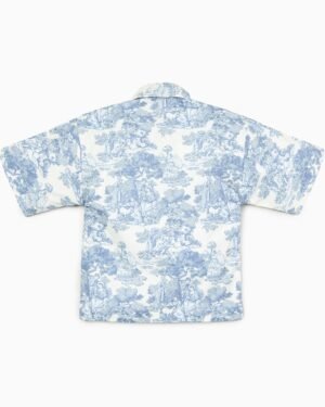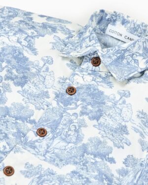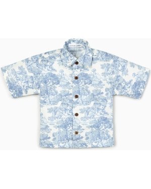The Country Toile Shirt in Blue is crafted from breathable cotton poplin, offering a lightweight and comfortable feel. Designed with a classic collar neckline and half sleeves, it features a neat button-up closure for easy wear. The printed pattern adds a refined touch, making it perfect for everyday casual outings. Easy to maintain, this shirt can be gently machine washed for regular use.