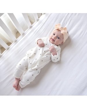 100% GOTS certified organic cotton• Natural dyed white super soft cotton with a little stretch• Zip feature for easy front opening with a protective chin guard• Fold-over cuffs on the feet provide extra coziness and room to grow• Gender Neutral Colors Â