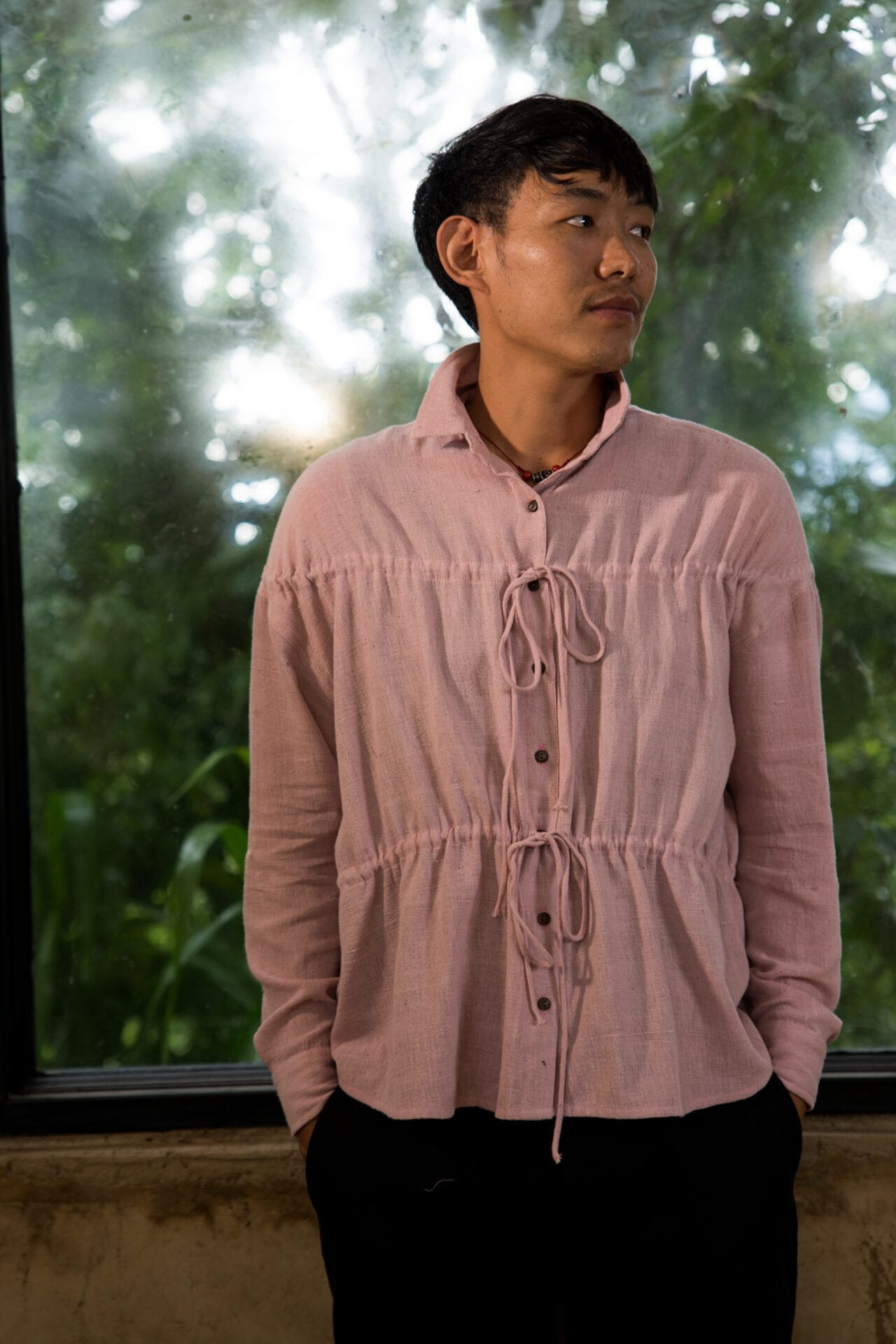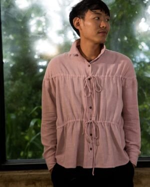 Inspired by the comfort of Indian Kurtas, this unisex stand-collar lightweight hand-woven shirt features a wrap-around closure with button fastening at the lower right side. Embroidered front. Straight-cut hem. Pair with your favorite pants or long skirt for a relaxed look.; Craft: Handloom Weaved, Material: Lotus Silk, Return Policy: Non-Returnable, Shipping: 8 to 10 Working Days, Fit: Loose, Occasion: Casual, Sleeve: Yes, Care Description :"Washing Instructions: Fill your bucket with cold water, turn your Lotus silk item inside out, and submerge it. It comes to washing your Lotus silk item, your best bet is to use a high-quality liquid detergent. Add a few detergent drops into the water and stir it well, then leave your item in the solution for three minutes. Gently pull your garment up and down for three to five minutes to remove any dirt. Take your garment out from the sink, drain off the water, and
