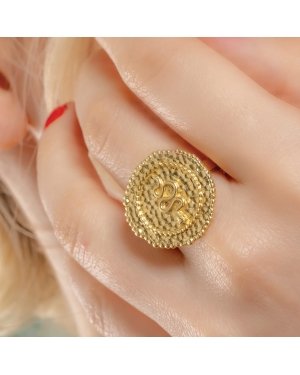 The Embossed Snake Coin Ring combines ancient symbolism with modern craftsmanship. Inspired by the Chinese Zodiac, the snake is a symbol of wisdom, strength, and transformation. This stunning ring features a detailed embossed snake design on a textured coin-shaped base, offering a unique look that speaks to both history and modern luxury.Crafted with premium brass alloy and finished with 22KT real gold plating, this ring reflects the elegance of fine jewelry without compromising on durability. The embossed texture and bold snake design create a striking visual impact, perfect for adding a distinctive edge to both casual and formal outfits.Whether you're a fan of Zodiac jewelry, a lover of unique accessories, or searching for a meaningful gift, the Snake Coin Ring makes a bold statement. Wear it to connect with the symbolism of the Snake or simply to enjoy its striking aesthetic appeal.Perfect For:Chinese Zodiac enthusiastsStatement jewelry loversEveryday bold accessoriesMeaningful gifts