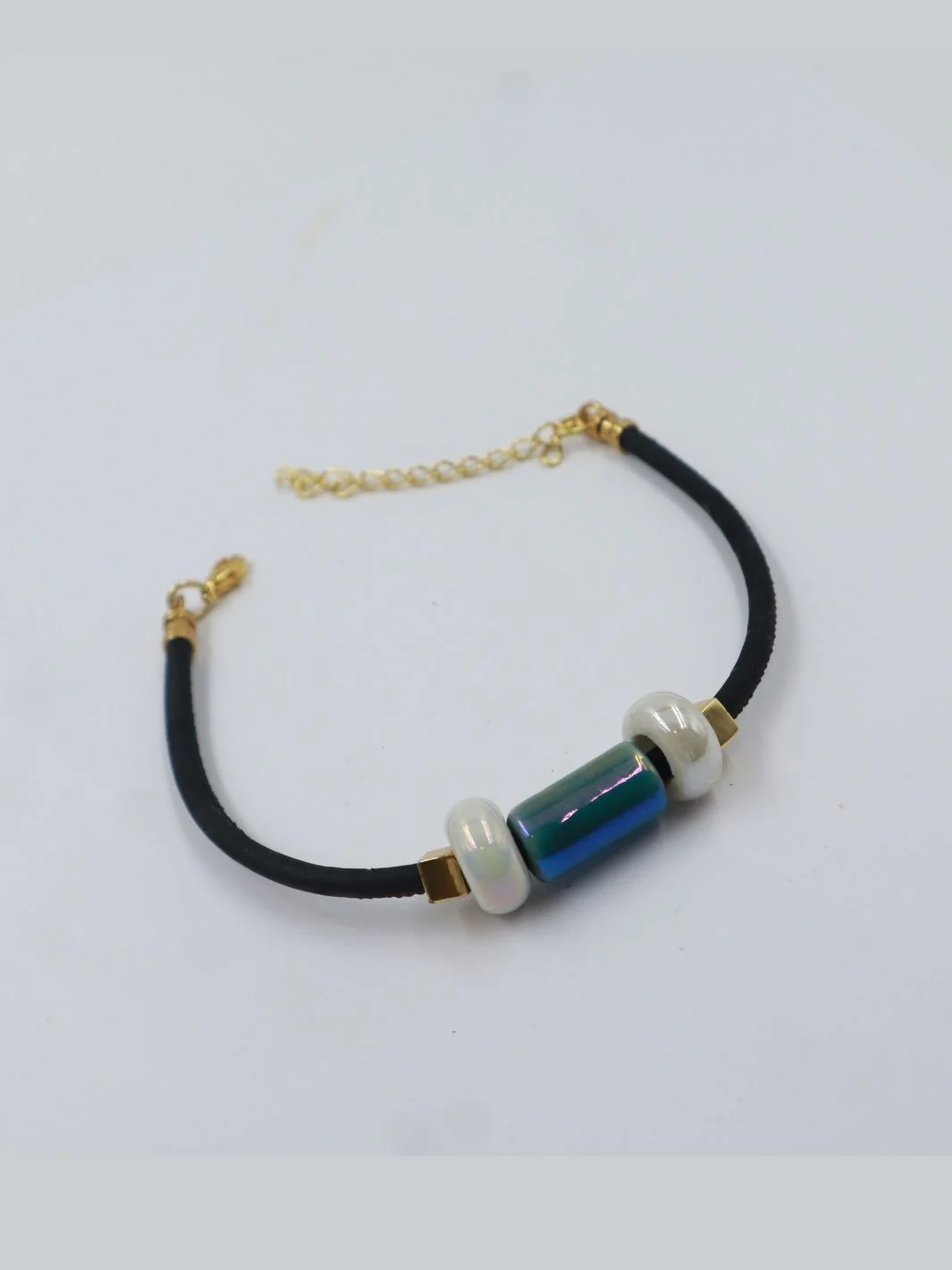 Introducing the Emerald Lily Harmony Bracelet, a captivating blend of elegance and sustainability. This women's vegan cork bracelet showcases radiant emerald lily-hued ceramic stones in black cork and a secure lobster lock. Presented in elegant fabric pouch packing, this distinctive, eco-conscious accessory will transform your style.