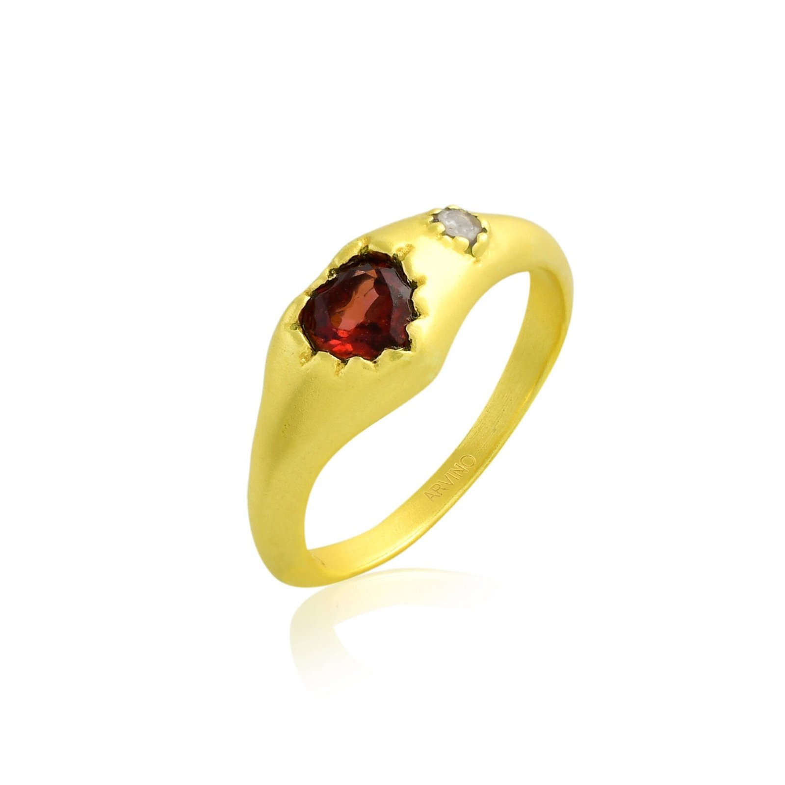 Encased Love Garnet Ring – Natural Red Garnet Solitaire Ring for Women, 22KT Gold Plated Romantic Promise Ring, January Birthstone Jewelry Gift