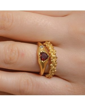 A Symbol of Protected PassionThe Encased Love Garnet Ring is more than just an accessory; it is a narrative of devotion. The rich, wine-red hues of the natural Garnet are elegantly 'encased' in a sleek gold silhouette, representing a love that is both cherished and protected.Exquisite Artistry & QualityThe Centerpiece: A genuine, round-cut Red Garnet, known as the stone of commitment and heart-felt energy.Premium Plating: Multi-layered 22KT Real Gold Plating over a high-density brass alloy for a brilliant, long-lasting golden luster.Modern Romantic Design: A unique "encased" setting that offers a contemporary twist on the classic solitaire ring.The Garnet LegacyAs the January Birthstone, Garnet is historically celebrated for bringing light, hope, and vitality to its wearer. This ring serves as a powerful talisman for those embarking on new journeys or celebrating lasting bonds.Crafted for Daily EleganceAt Toilee Eco Designers, we ensure every piece is lead and nickel-free, providing a comfortable, hypoallergenic