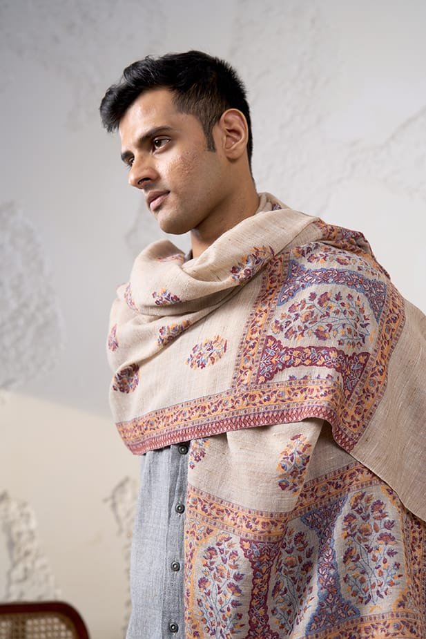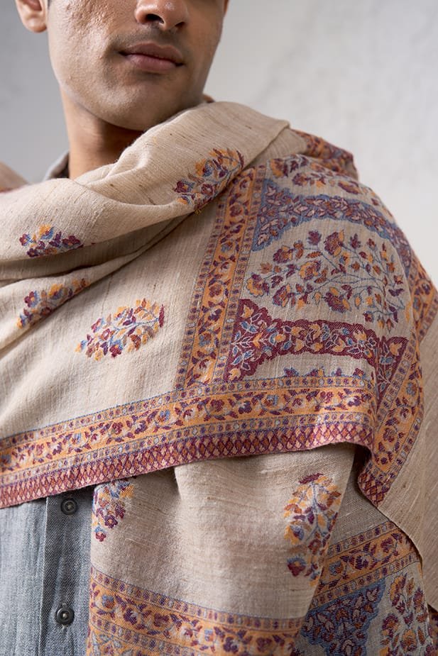 Eunoia, Greek for beautiful thinking, rightfully so has been the inspiration behind our design for this kani sthawl. An