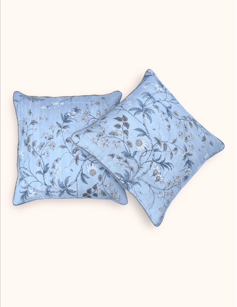 Patterned with floral motifs digitally printed on Handwoven Dupion Silk, our Everett Handwoven Cushions are a festive addition to your living space. Inspired by William Morris artwork, the lively feel of the handwoven cushions is felt by the alluring blue shade.