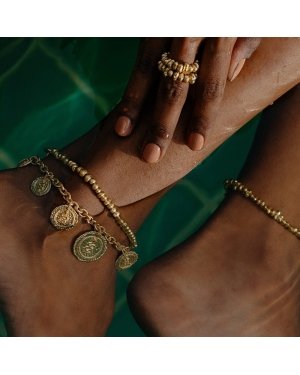 Introducing our Medallion of the Serpent Anklet, adorned with multiple undulated textured medallions embossed with serpe
