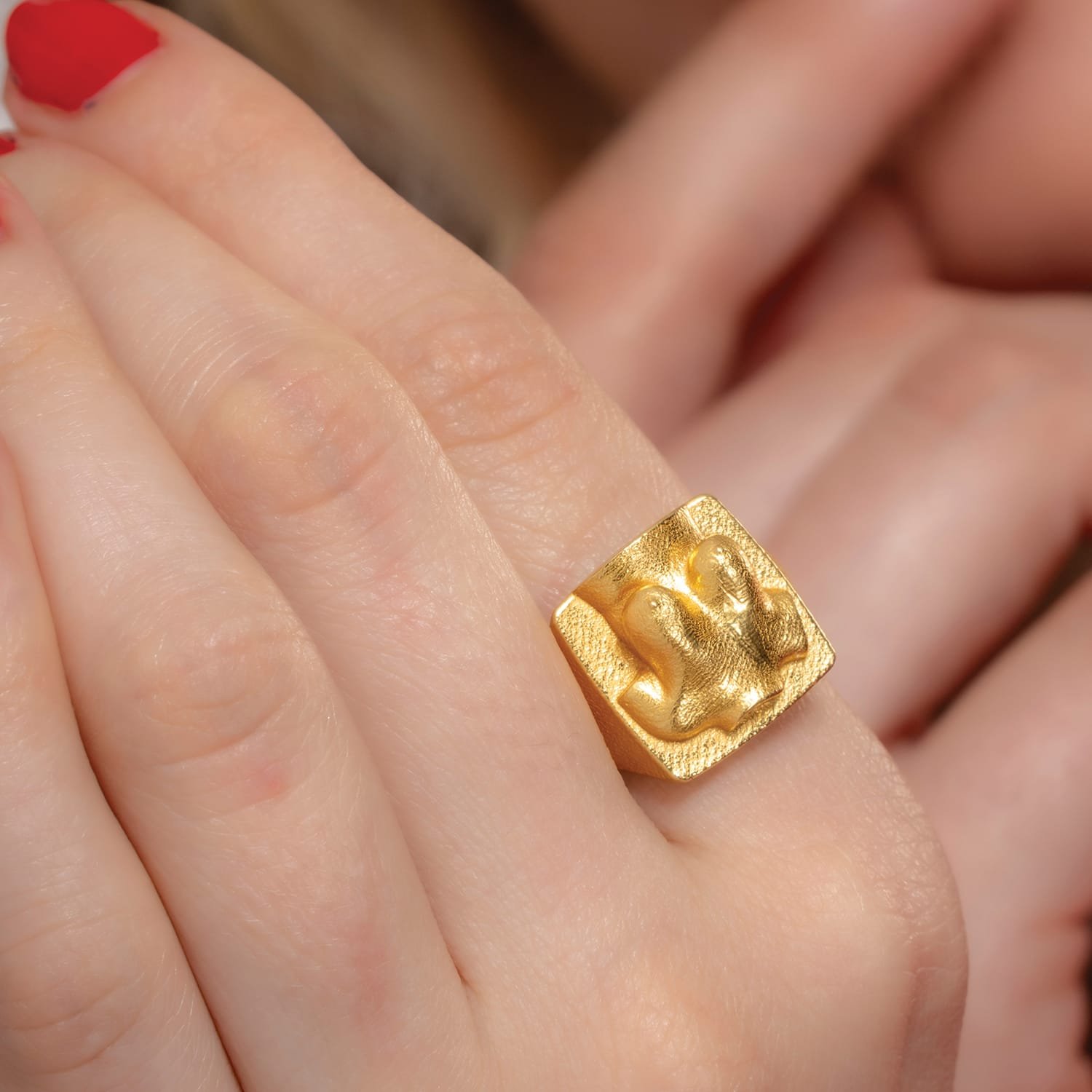 Granular Diva Signet Ring – 22KT Gold Plated Adjustable Ring for Women | Empowerment Jewelry, Sculpted Body Design