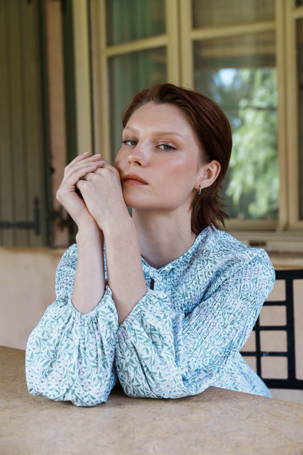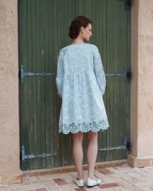 Crafted in fine fabric, this Green and lilac printed poplin dress with schfflie hemline showcases Pinnacle by Shruti Sancheti?s timeless craftsmanship and feminine grace. A perfect piece for effortless day-to-evening elegance.