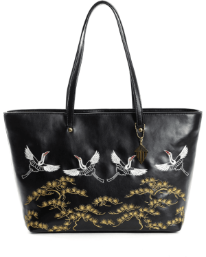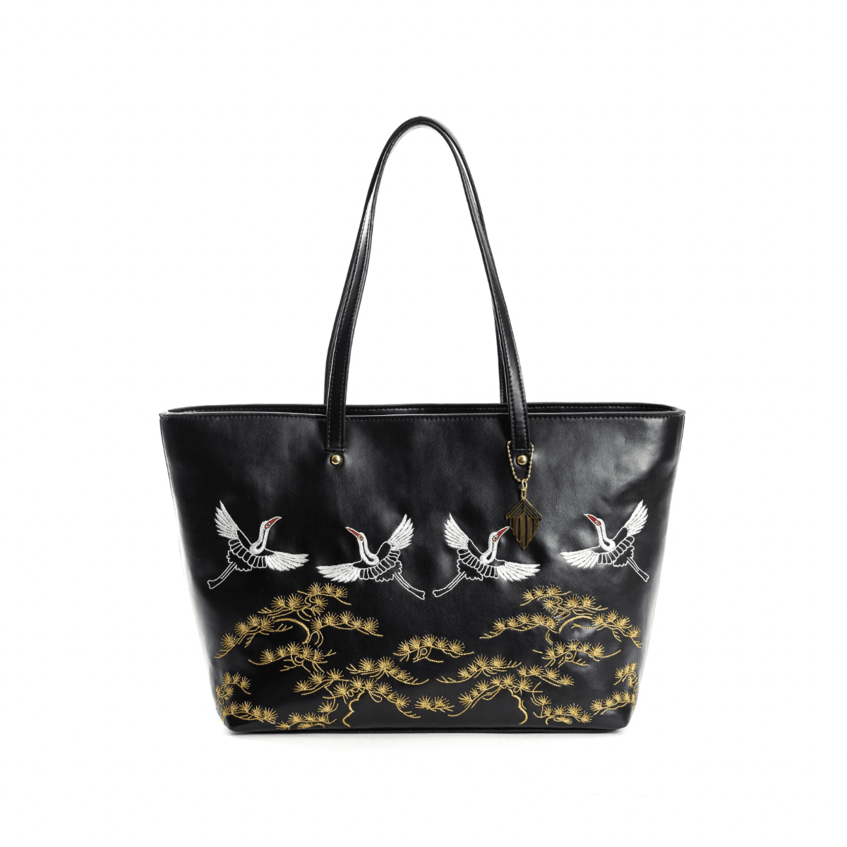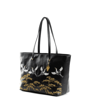 Embroidered eco-friendly tote inspired by nature, crafted from plant leather for graceful everyday carry.