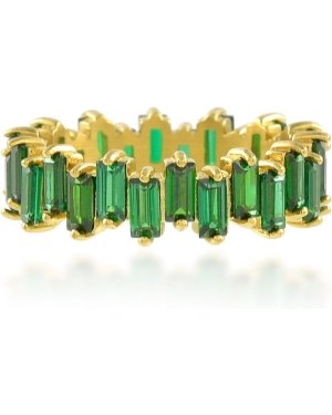 Green Zircon Eternity Ring – 22K Gold Plated Emerald Green Sparkling Band for Women, Premium Brass Alloy Handcrafted Jewelry