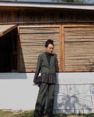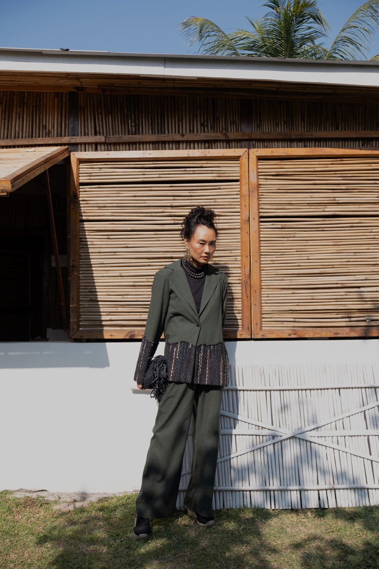 The garment is made from hand woven upcycled fabric and so the color might vary slightly for each batch.