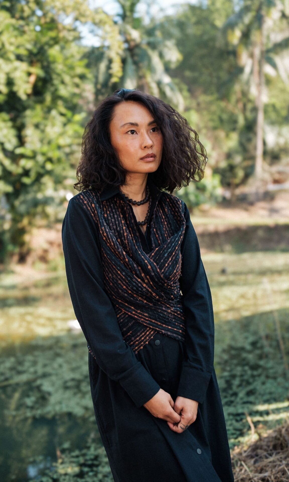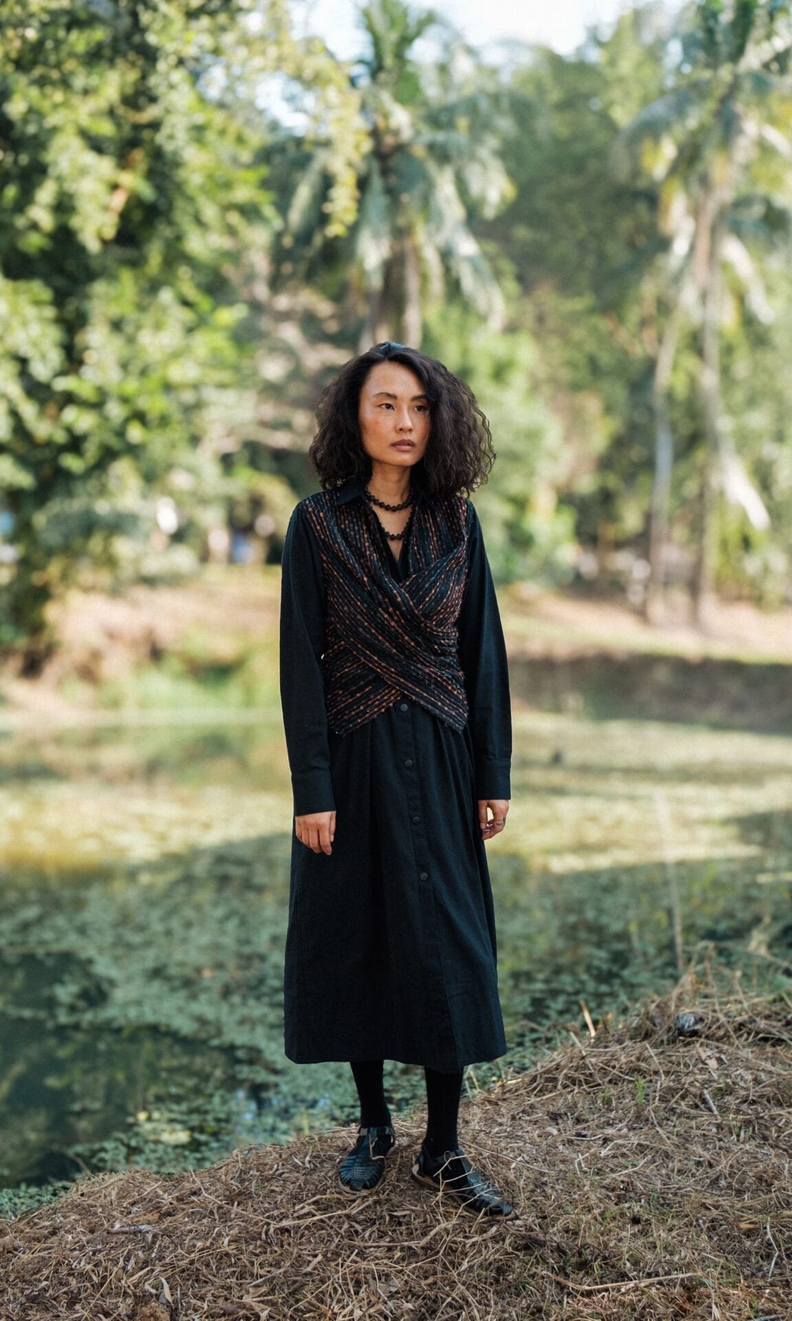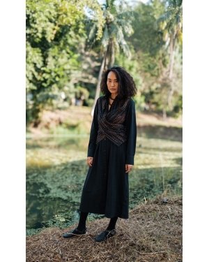 A truly exquisite wrap shirt midi dress that seamlessly transforms from a sophisticated staple to a casually chic garment designed from upcycled fabric, made using post production waste.