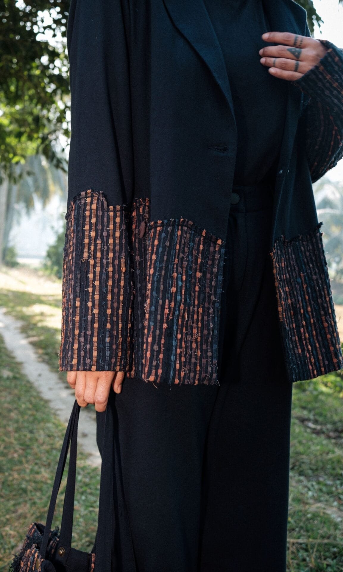 This oversized blazer designed from upcycled fabric, made using post production waste is the perfect balance of comfort and style to elevate your wardrobe.
