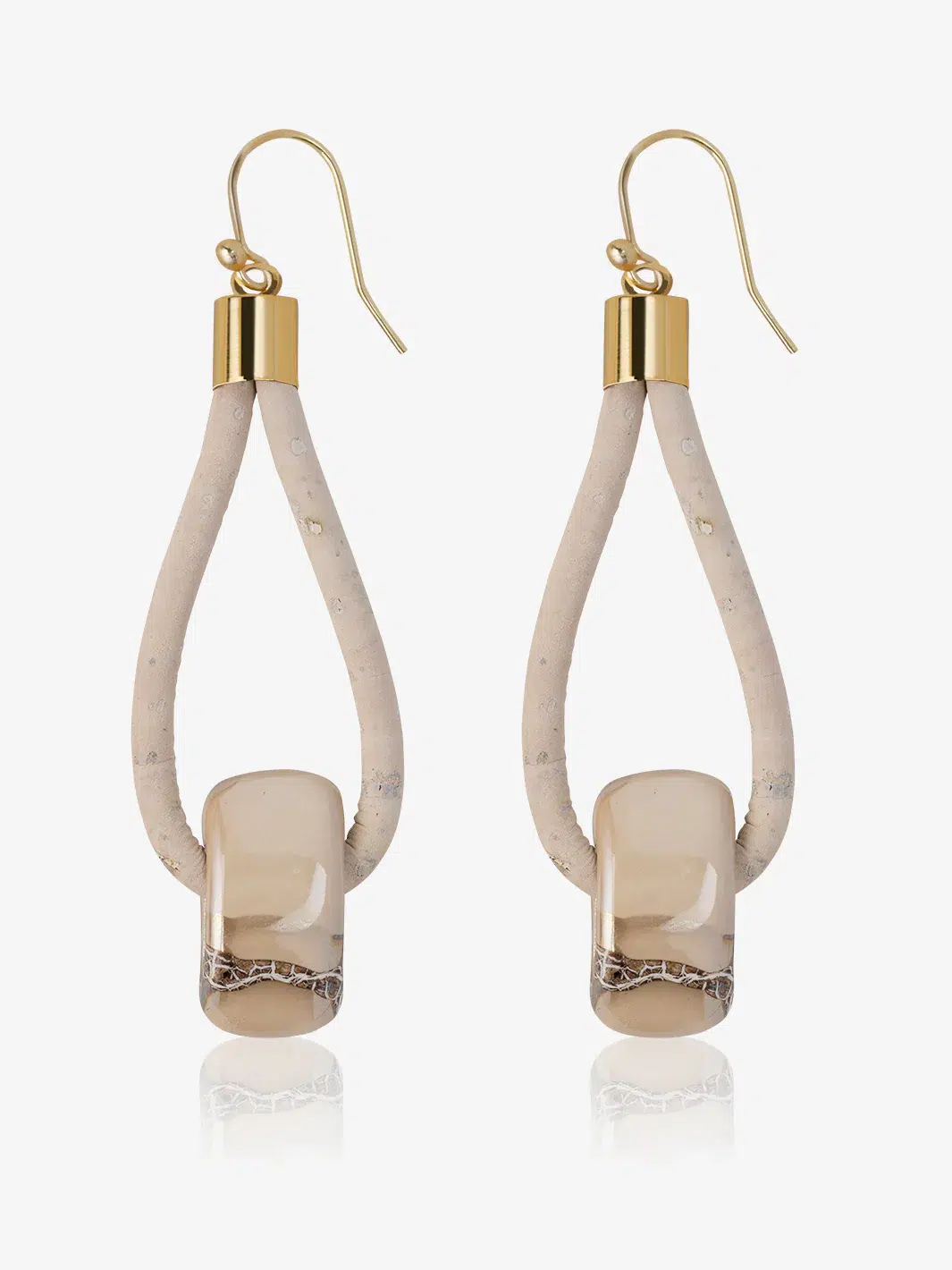 Handcrafted in luxurious white cork and bejewelled in ceramic beads, 'Iced Mountain' Cork Earrings as an Ode To our mother - Gaia.