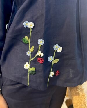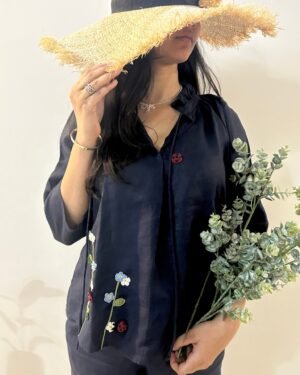 Embrace timeless elegance with the Indigo Serene Stitch Linen Set, featuring both the Top and Trousers for a stylish and coordinated outfit.
