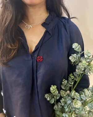 Indigo Serene Stich Linen Top &#038