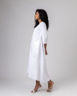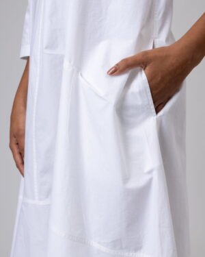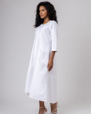Fitted just at the chest this flared dress is made in cut and sew panel style.Pocket: Inseam pocketFit: Fitted at ChestF