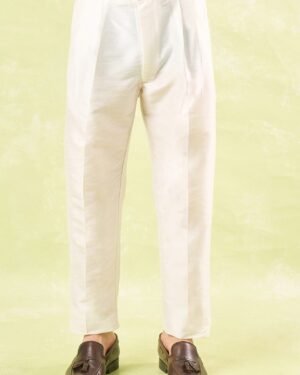 Lavender raw silk based jacket enhanced with pearl and cut dana embroidery paired with a matcing cotton silk based kurta and an off white dupion silk based mexican pants.
