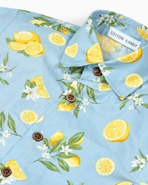 The Limone Blue Shirt is crafted from breathable cotton poplin, making it perfect for warm-weather comfort. Designed with a classic collar neckline, half sleeves, and a button-up closure, it offers an easy, relaxed fit. The printed pattern adds a fresh, seasonal touch, making it ideal for spring?summer styling and casual outings. Easy to maintain, it can be gently machine washed.