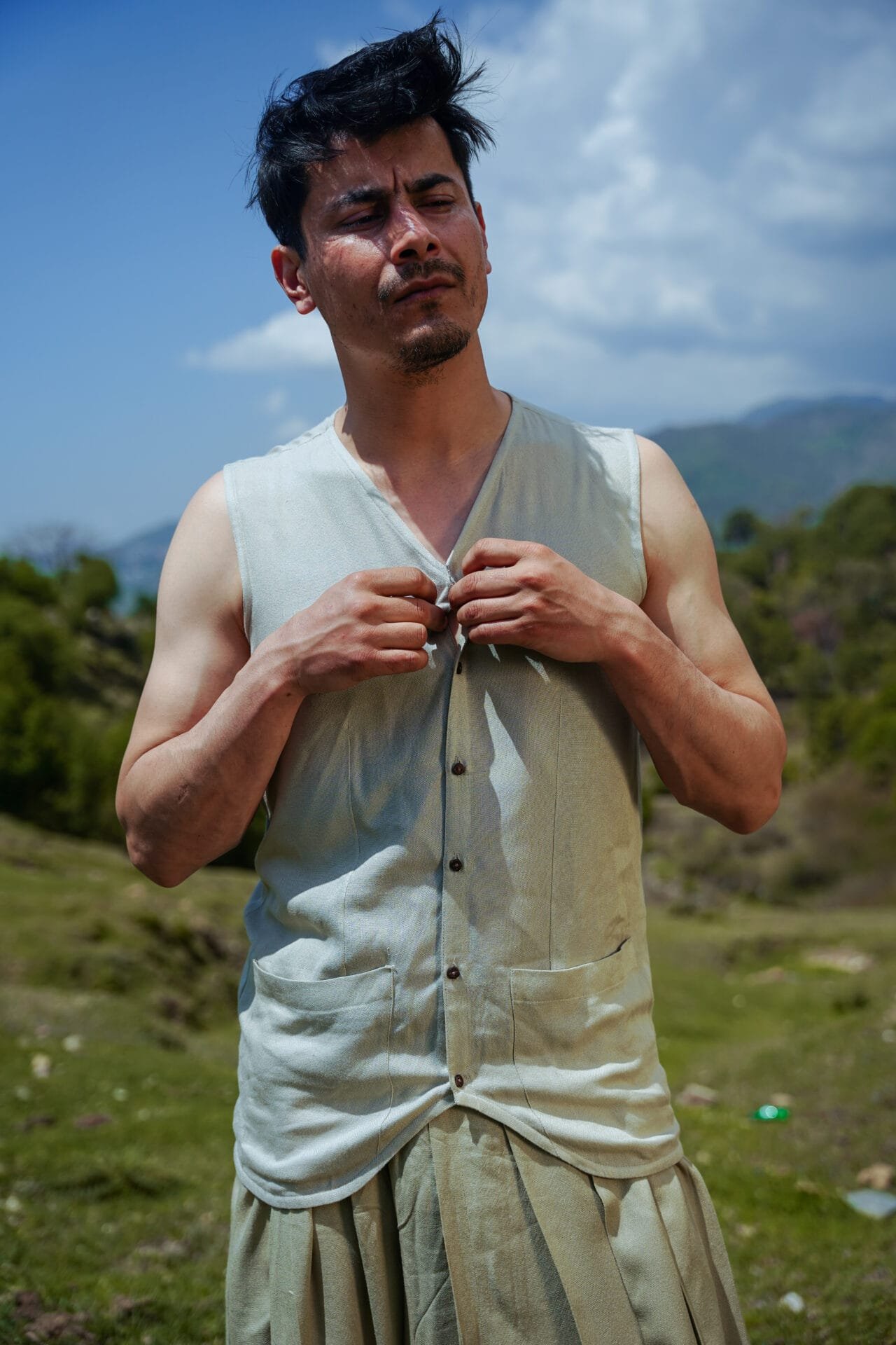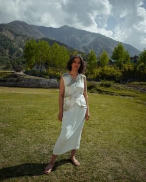 A unisex light and breezy buttoned vest with front pockets. Craft: Handloom Weaved, Material: Lotus Silk, Return Policy: Non-Returnable, Shipping: 8 to 10 Working Days, Fit: Loose, Occasion: Casual, Sleeve: No, Care Description :"Washing Instructions: Fill your bucket with cold water, turn your Lotus silk item inside out, and submerge it. It comes to washing your Lotus silk item, your best bet is to use a high-quality liquid detergent. Add a few detergent drops into the water and stir it well, then leave your item in the solution for three minutes. Gently pull your garment up and down for three to five minutes to remove any dirt. Take your garment out from the sink, drain off the water, and rinse under cold water until the detergent has been completely washed out. Never wash with chlorine bleach. It can damage your clothing’s natural fibers. Use a towel to absorb any excess
