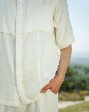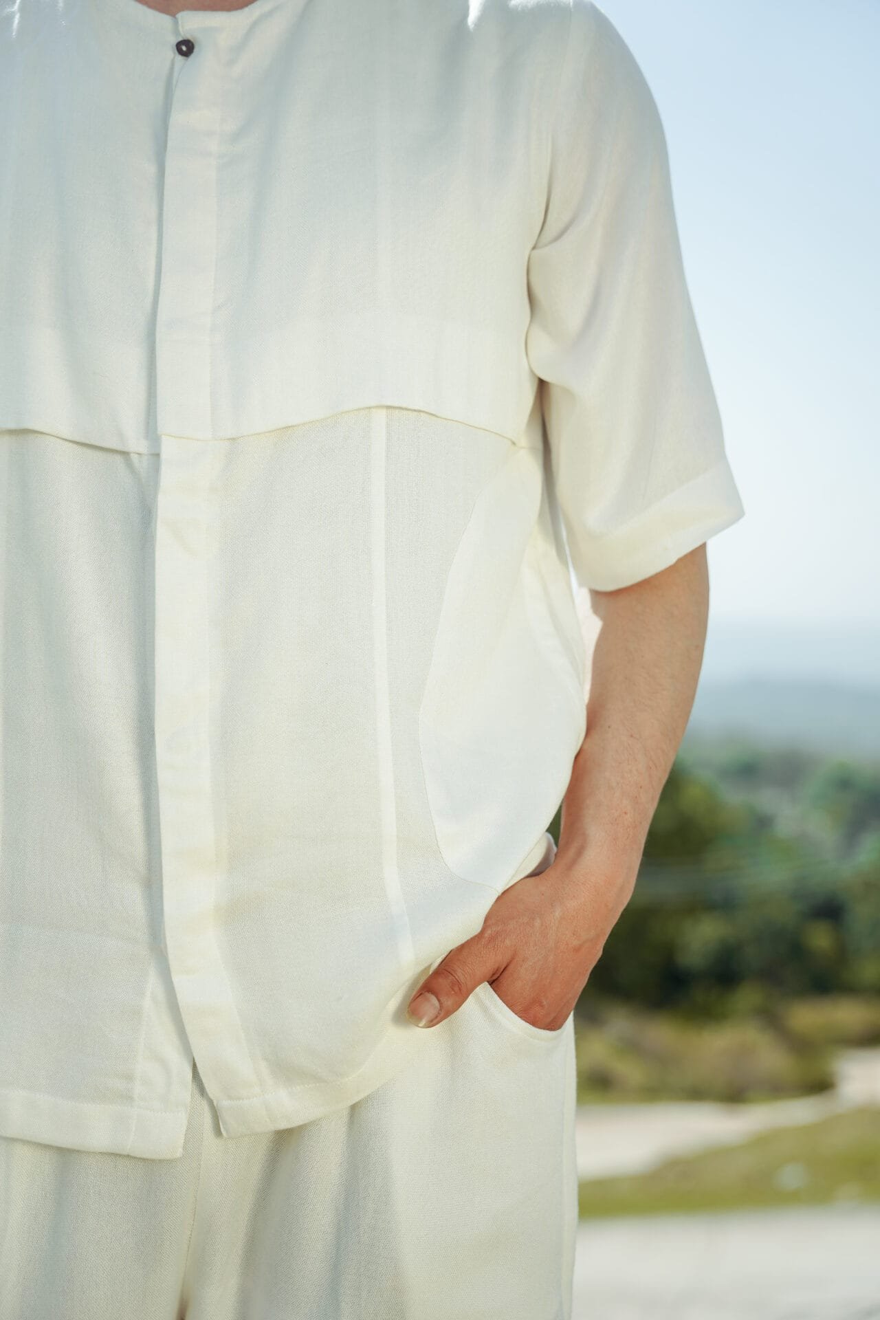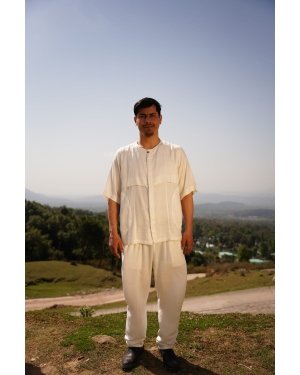 Smart, and savvy, an organic lotus button-up for the summertime minimalist. Featuring hidden placket in the front and pockets on the sides. Order down a size for a more fitted look.; Craft: Handloom Weaved, Material: Lotus Silk, Return Policy: Non-Returnable, Shipping: 8 to 10 Working Days, Fit: Loose, Occasion: Casual, Sleeve: Yes, Care Description :"Washing Instructions: Fill your bucket with cold water, turn your Lotus silk item inside out, and submerge it. It comes to washing your Lotus silk item, your best bet is to use a high-quality liquid detergent. Add a few detergent drops into the water and stir it well, then leave your item in the solution for three minutes. Gently pull your garment up and down for three to five minutes to remove any dirt. Take your garment out from the sink, drain off the water, and rinse under cold water until the detergent has been completely