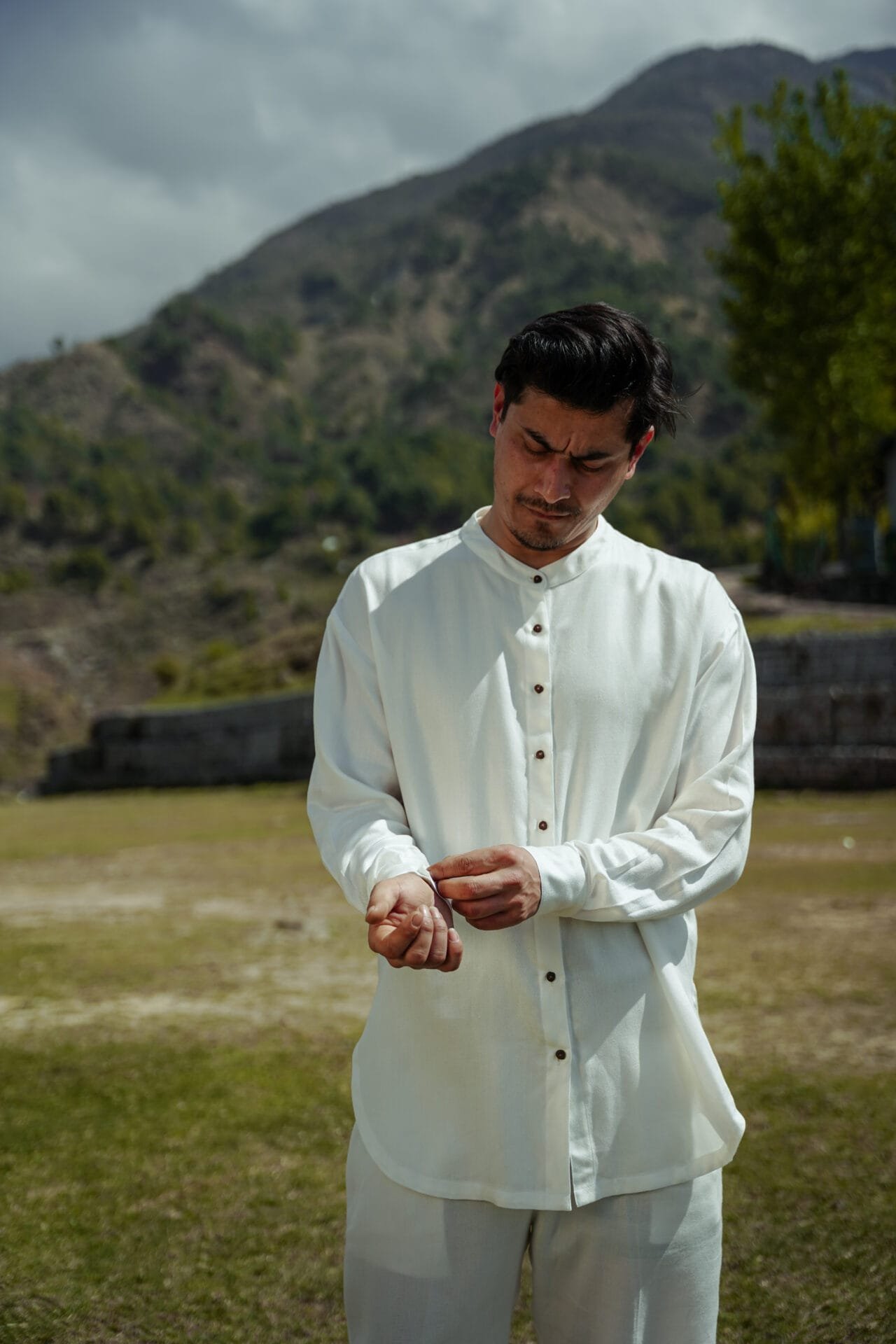 Available in multiple lengths, this unisex button-up shirt is a staple piece. A relaxed look through the body, with pockets, and details in the side split and back yoke. Craft: Handloom Weaved, Material: Lotus Silk, Return Policy: Non-Returnable, Shipping: 8 to 10 Working Days, Fit: Loose, Occasion: Casual, Sleeve: Yes, Care Description :"Washing Instructions: Fill your bucket with cold water, turn your Lotus silk item inside out, and submerge it. It comes to washing your Lotus silk item, your best bet is to use a high-quality liquid detergent. Add a few detergent drops into the water and stir it well, then leave your item in the solution for three minutes. Gently pull your garment up and down for three to five minutes to remove any dirt. Take your garment out from the sink, drain off the water, and rinse under cold water until the detergent has been completely washed out.