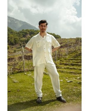 In its original colour, white the much loved (and admired) boxy cut shirt pockets in front. Can be worn untucked, pushed down and slouchy or tucked under for more structure. Order down a size for a more fitted look.; Craft: Handloom Weaved, Material: Lotus Silk, Return Policy: Non-Returnable, Shipping: 8 to 10 Working Days, Fit: Loose, Occasion: Casual, Sleeve: Yes, Care Description :"Washing Instructions: Fill your bucket with cold water, turn your Lotus silk item inside out, and submerge it. It comes to washing your Lotus silk item, your best bet is to use a high-quality liquid detergent. Add a few detergent drops into the water and stir it well, then leave your item in the solution for three minutes. Gently pull your garment up and down for three to five minutes to remove any dirt. Take your garment out from the sink, drain off the water, and rinse under