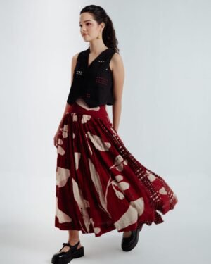 Discover Fayra—an enchanted garden woven in the finest handspun cotton from West Bengal, naturally dyed in deep maroon a