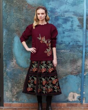 Maroon woolen knitted sweater with chintz embroidery