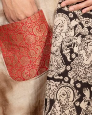 Bageeya “Matti” Reversible Khadi Tussar cotton Pasban Jacket | Crafted with Walnut and Block Print detailed with Broca