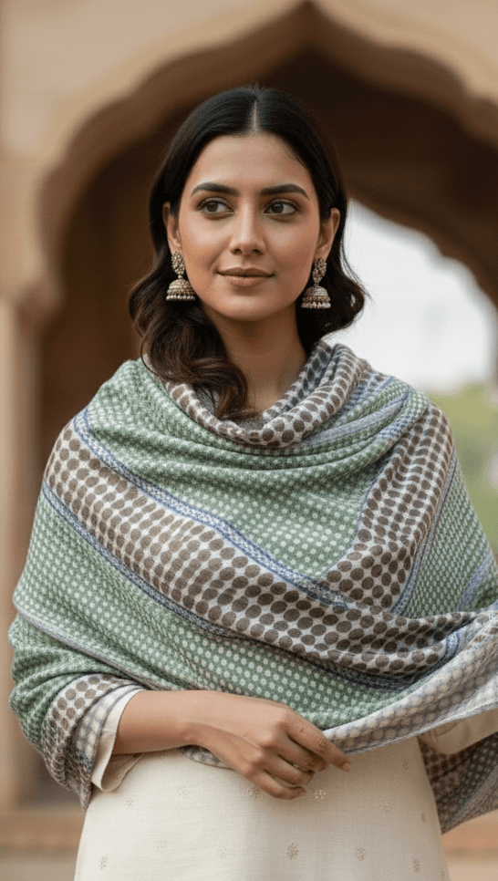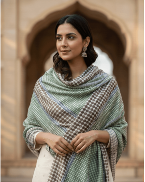 Wrap yourself in the soothing elegance of our Mint Echo Screen-Printed Cashmere Stole, crafted in 100% Fine Wool Cashmer
