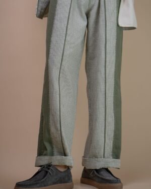 Crafted from 100% cotton fibers and natural materials, these pants are crafted from a combination of solid and checkered Kala Cotton, azo-free dyed in a soothing olive colour.