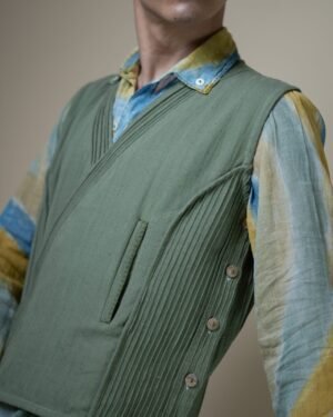 Crafted from 100% cotton fibers and natural materials, the Meadows Unisex Corded Vest is made from our signature Kala Cotton, dyed in a soothing olive colour using azo-free dyes.