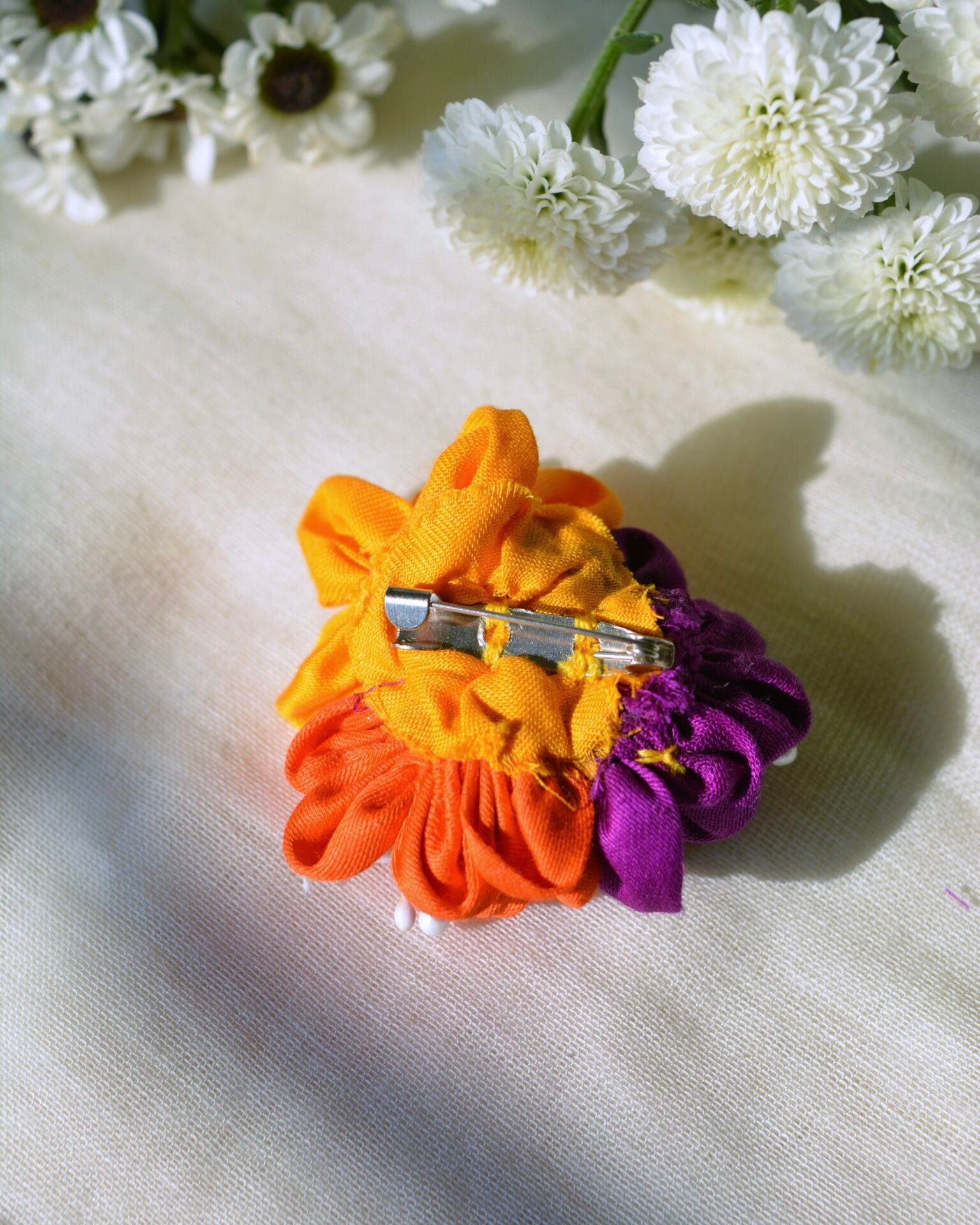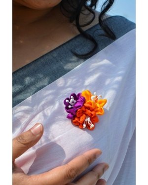 The Mehek brooch is a captivating accessory that epitomizes elegance and craftsmanship. Handcrafted with meticulous attention to detail, this exquisite piece features three fabric flowers in an array of vibrant colors—a harmonious blend that transcends traditional adornment. Designed to be worn on a sari or any monochrome outfit, the Mehek brooch serves as a transformative element, instantly elevating the wearer’s ensemble.The brooch’s lively colors inject a sense of playfulness and sophistication, turning even the most understated outfits into fashion statements. Whether accessorizing a formal sari or adding flair to a simple dress, the Mehek brooch effortlessly infuses a spirit of fun, chicness, and quirkiness. Ideal for those who appreciate individuality and style, this unique accessory enhances one’s overall appearance, making it a must-have for any wardrobe. In essence, the Mehek brooch is not merely an accessory; it is a celebration of artistic expression and vibrant design.Wash Care: Spot clean the