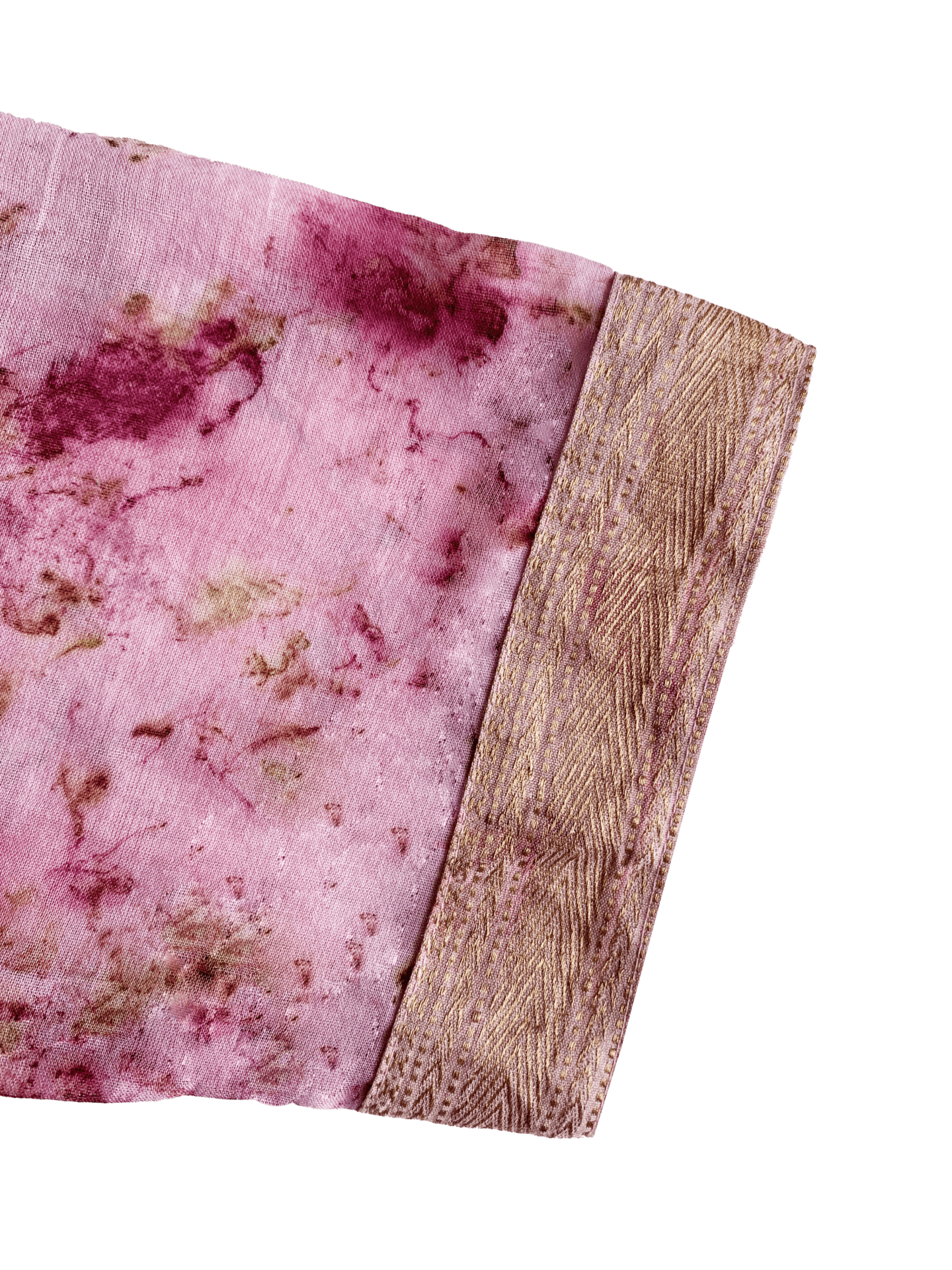 Bageeya's ?Mul Lavanya? Handwoven Mashru and Mul , Sacred Herb and flower dyed Jacket. Step into a world of timeless sophistication with the Lac And Marigold Herbal Jacket. This non-reversible jacket is a true embodiment of artisanal craftsmanship, dyed with ayurvedic herbs and the sacred temple flowers of lac and marigold. These natural ingredients not only lend a beautiful hue but also offer unique therapeutic properties that are gentle for your skin and kind to the planet. Crafted from pure mul and handwoven mashru fabric from Gujarat, this 100% handcrafted jacket is designed for those special occasions where you want to make a memorable impression. The jacket features a free-size fit with side pockets and a classic shawl collar, making it both stylish and practical. The handwoven mashru and pure mul fabrics used in this jacket are carefully sourced from skilled artisans in Gujarat. The jacket is dyed by hand