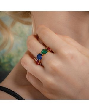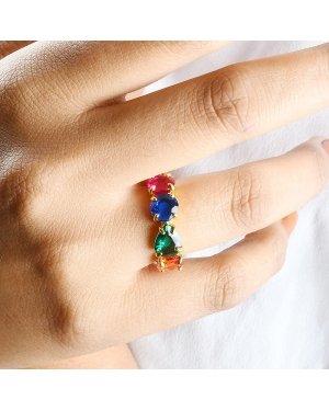 Make a bold statement with our Multihued Crescendo Ring, crafted to dazzle with a vibrant pop of colors. Gleaming with a