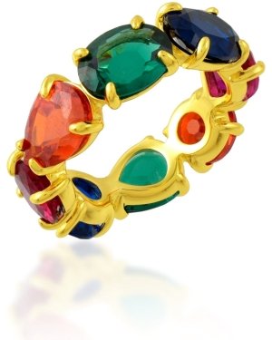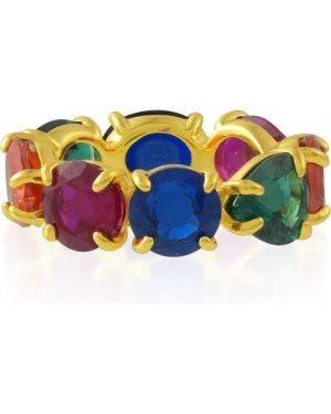 Celebrate color, joy, and individuality with the Multihued Crescendo Rainbow Eternity Ring. This striking band showcases a seamless flow of vibrant, multicolored stones, creating a harmonious crescendo of color that symbolizes optimism and self-expression.Crafted with a durable premium brass alloy base and finished in 22KT real gold plating, the ring delivers a luxurious golden sheen while remaining lightweight and comfortable for all-day wear. The eternity-style design ensures continuous sparkle from every angle, making it a standout piece in any jewelry collection.Key highlights:Rainbow eternity band with finely set multihued stones22KT real gold plating for a rich, premium finishPremium brass alloy construction for durabilityLightweight, skin-friendly, and nickel-freeIdeal for daily wear, festive styling, travel, and giftingWhether worn solo for a pop of color or stacked with other rings for a bold statement, this multicolor eternity ring adds effortless charm to both casual and occasion looks. A perfect gift for birthdays, celebrations, or to