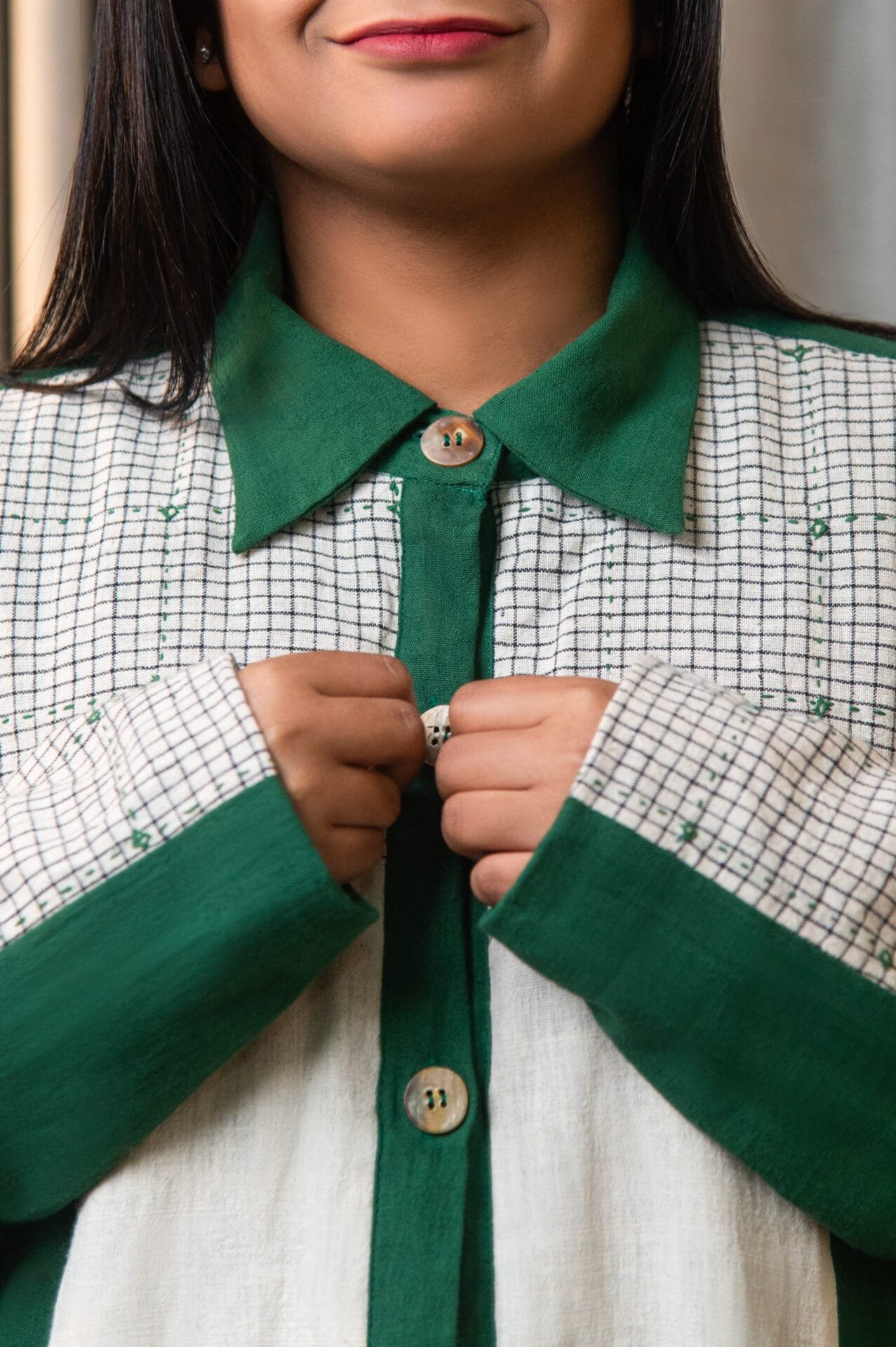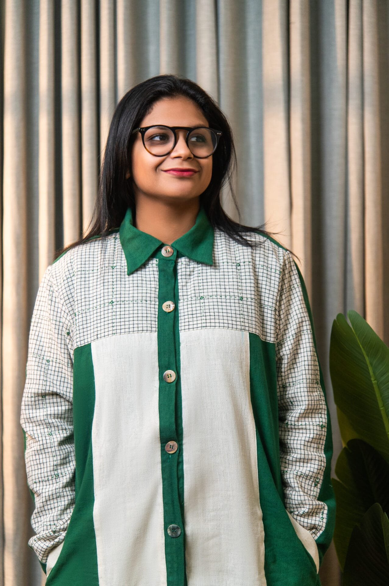 Style your everyday in bold ease with hand Rabari work where comfort meets statement. WASH INSTRUCTIONS - ONLY DRYCLEAN. Transparency & Certificate: Made in India with care, using natural dyes and produced in small batches with ISO certification. Shipping Courier charges DOMESTIC(IN INDIA) : ?500/KG, INTERNATIONAL : ?3000/KG