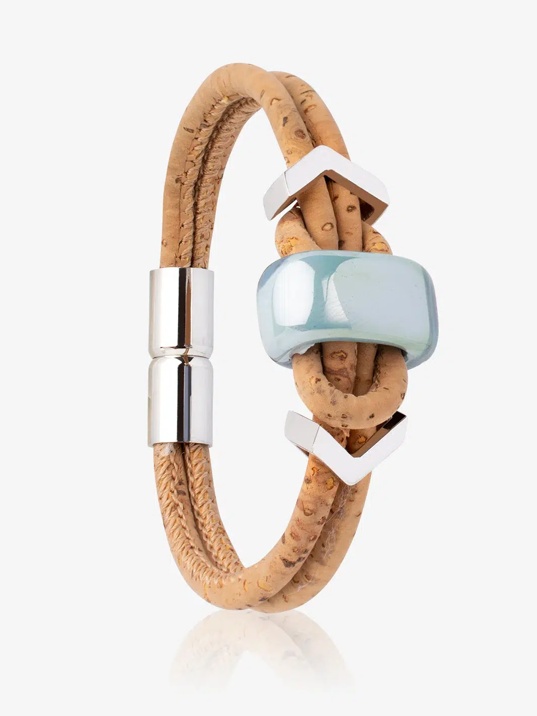 Introducing our Northern Light Vegan bracelet, a contemporary piece of jewellery inspired by the mesmerizing green hues of the aurora borealis. Handcrafted from sustainable Cork Oak Tree bark and adorned with iridescent porcelain ceramic beads, this bracelet is a stunning representation of eco-friendly, modern jewellery.